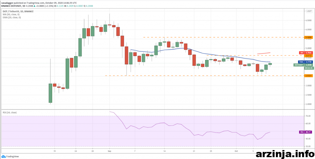 در صورت قدرت گرفتن روند صعودی و افزایش قیمت ها تا 4.6 دلار، می توان انتظار افزایش قیمت ها را تا 5.5 دلار داشت.اما به نظر نمی رسد که خرس ها به سادگی تسلیم گاوها شوند. خرس ها برای دفاع از سطح مقاومتی 4.6 دلاری تلاش خواهند کرد. در صورتی که خرس ها موفق شوند، این رمزارز در بازه ای فشرده در روزهای آتی معامله خواهد شد. در صورت ریزش قیمت ها به زیر سطح حمایتی 3.5 دلاری، خرس ها بر بازار مسلط خواهند شد.