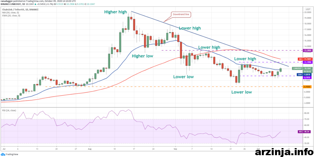 این رمزارز به بالای سطح میانگین متحرک نمایی 20 روزه (9.8 دلاری) افزایش قیمت داشته است. هدف بعدی گاوها افزایش قیمت ها به بالای سطح مقاومتی 11.1 دلاری خواهد بود.در صورت موفقیت گاوها، روند تغییر خواهد کرد و این ارز برای رسیدن به سطوح 13.2 و سپس 17.7 دلاری حرکت خود را آغاز خواهد کرد. اما در صورتی که گاوها موفق به تحقق اهداف خود نشوند، خرس ها برای کاهش قیمت ها به زیر سطح 6.9 دلاری دوباره تلاش خواهند کرد.