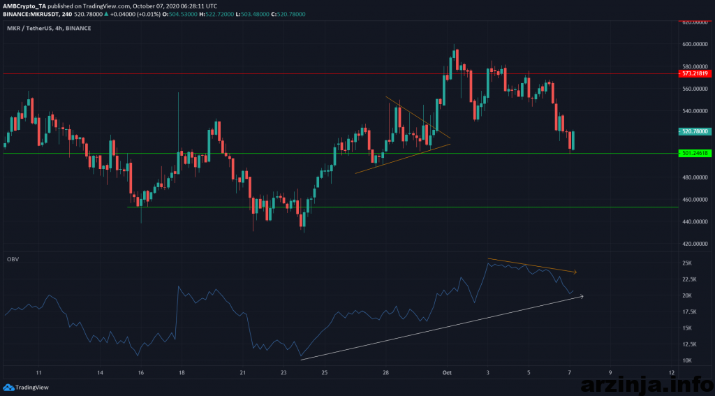 هفته گذشته میکر تلاش کرد که قیمت خود را به سطح مقاومتی 580 دلاری افزایش دهد، اما در هر دو تلاش خود ناموفق بود. میکر هم اکنون در سطح حمایتی 500 دلاری قرارگرفته است. این ارز دیجیتال نیز با منفی بودن بازار امروز، در قیمت 515 دلاری معامله شد.