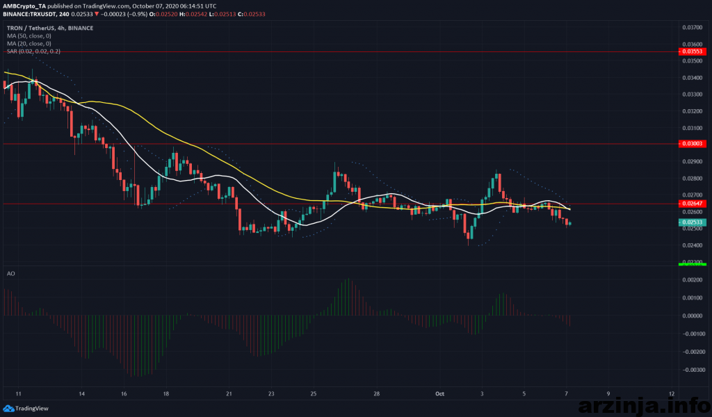 انتظار می رود که ترون به روند نزولی چند وقت خود از ماه سپتامبر ادامه دهد و با تداوم این روند نزولی، این ارز در سطوح حمایتی 0.0226 و 0.0224 دلاری قرار بگیرد.