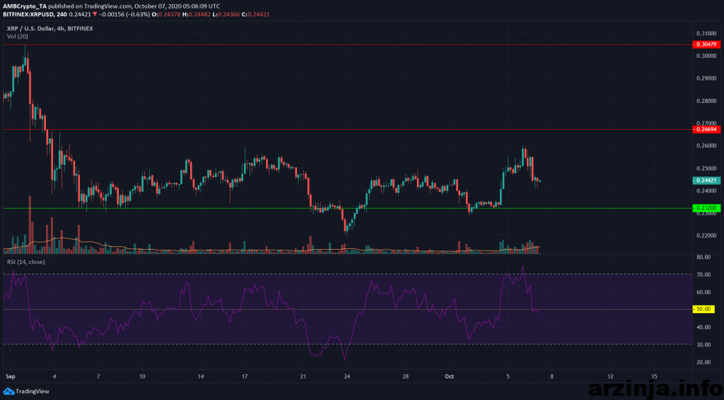 ریپل در چند روز گذشته موفق شد روند صعودی به خود بگیرد و قیمت خود را از 0.23 دلار به 0.26 دلار افزایش بدهد. اما خرس ها مانع از پیشروی گاوها شدند و ریپل را در سطح قیمتی 0.26 دلاری متوقف کردند. شاخص RSI نیز که روند مثبتی به خود گرفته بود هم اکنون در حالت خنثی قرار دارد.