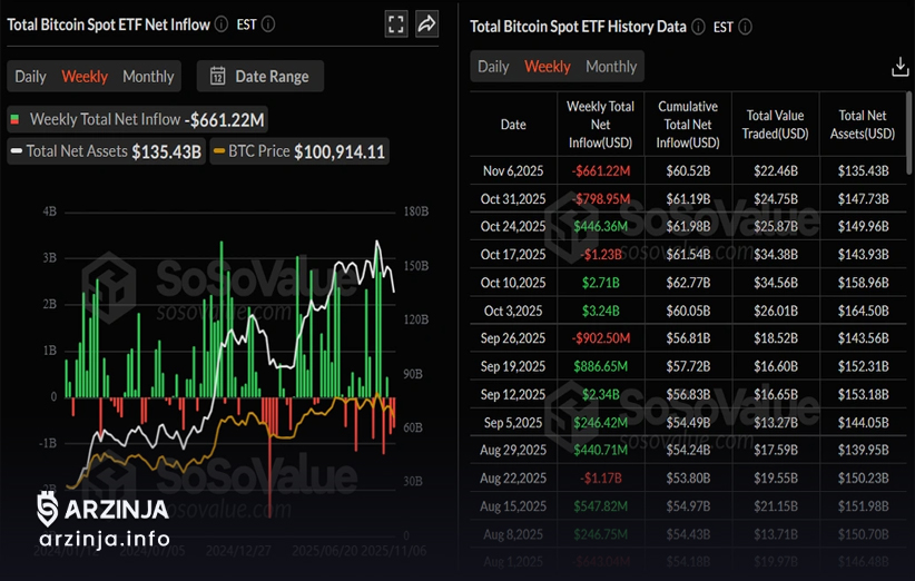 بیشترین خروج روزانه از ETFهای اسپات از ماه آگوست تاکنون