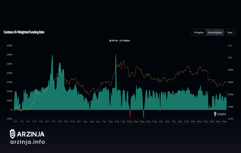 دادههای بازار مشتقات نیز از یک روند صعودی برای تحلیل کاردانو حمایت میکنند. همچنین، دادههای نرخ تأمین مالی وزنی بر اساس بهره باز Coinglass نشان میدهد تعداد معاملهگرانی که بر روی کاهش قیمت شرط بستهاند کمتر از کسانی است که انتظار افزایش قیمت دارند. این شاخص هفته گذشته مثبت شد و روز سهشنبه بر روی عدد 0.018 درصد قرار گرفت که نشان میدهد موقعیتهای خرید در حال پرداخت به فروشندگان هستند. بهطور تاریخی، زمانی که نرخهای تأمین مالی از منفی به مثبت تغییر کرده و افزایش یافتهاند، قیمت کاردانو جهش قابلتوجهی داشته است.