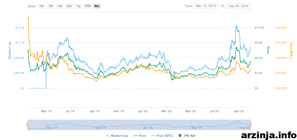 رمز ارز کازماس با تداوم روند صعودی خود موفق شد با رشد ۷.۲ درصدی در ۲۴ گذشته ارزش خود را به 5.4 دلار افزایش دهد. این ارز دیجیتال رتبه هفتم از نظر سرمایه بازاری را از بین ارزهای دیجیتال به خود اختصاص داده است.