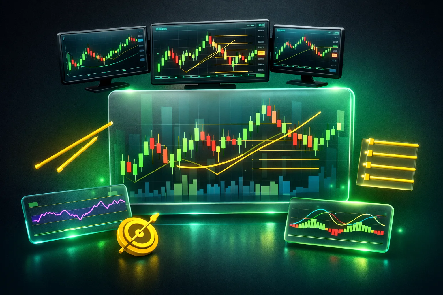 TradingView بیش از صدها اندیکاتور داخلی دارد و از طریق کتابخانه Pine Script هزاران اندیکاتور سفارشی کاربران نیز در دسترس است. با این حال، استفاده از تعداد زیادی اندیکاتور همزمان باعث سردرگمی میشود. توصیه تخصصی این است که با یک اندیکاتور روند، یک اندیکاتور مومنتوم و حجم شروع کنید و به تدریج دانش خود را گسترش دهید.